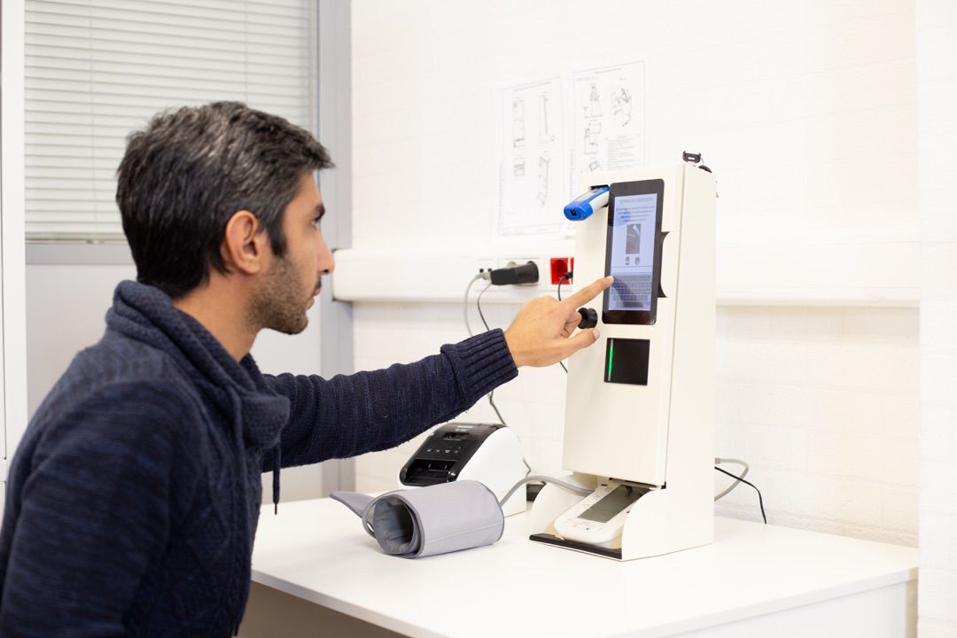 КАП «ЭСМО» предназначен для проведения в online режиме массовых предсменных, предрейсовых и послесменных, послерейсовых медицинских осмотров. Для выявления состояний и заболеваний, препятствующих выполнению трудовых обязанностей, в том числе алкогольного, наркотического или иного токсического опьянения и остаточных явлений такого опьянения. Терминал подходит для проведения массовых опросов, контроля знаний, проведения инструктажей и доведения контента